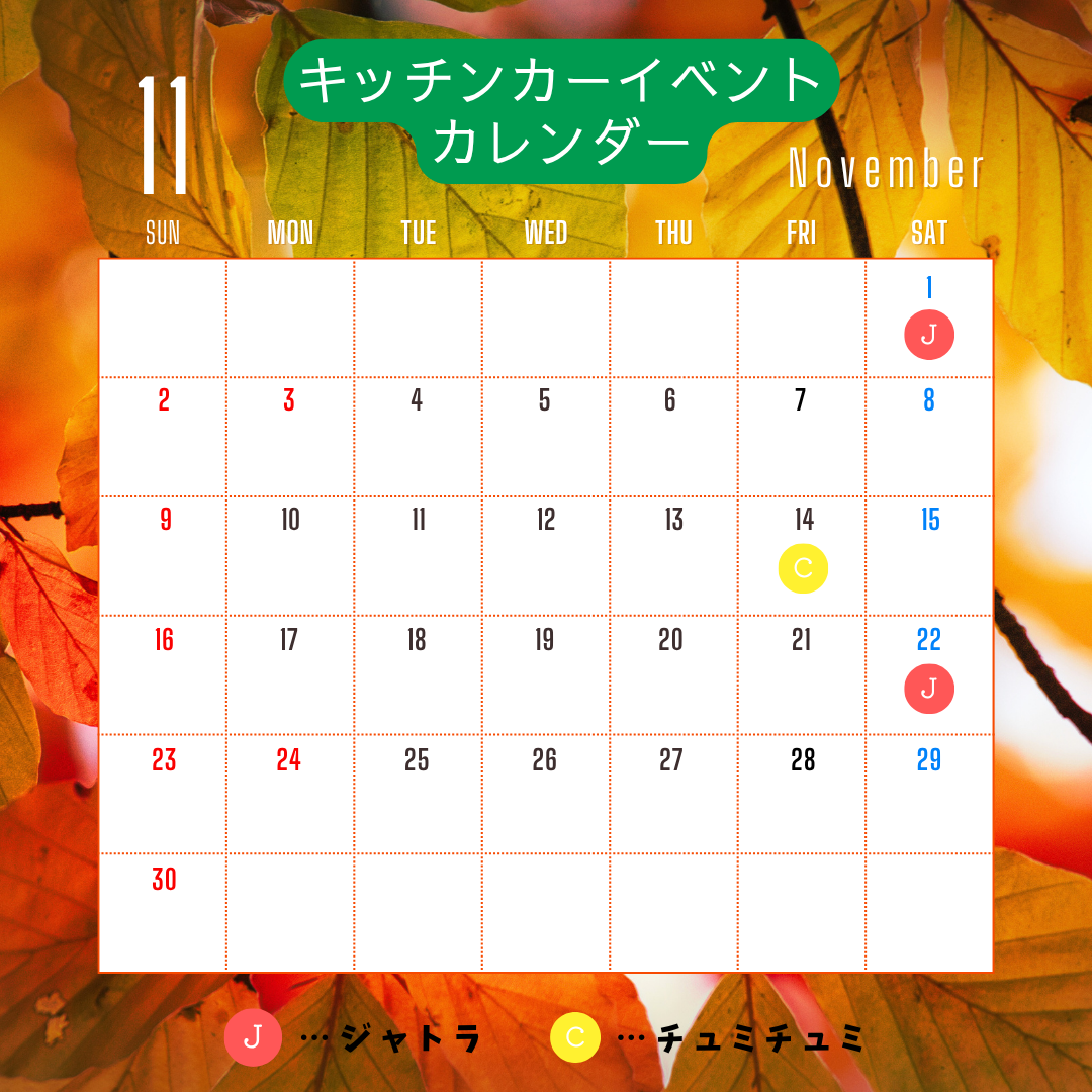 【JATRA】(ジャトラ) ■日時 11/1(土)、11/22(土) 10:30~16:30 ■場所 チェリオ駐車場 ■販売者 JATRA(ジャトラ) ・ベビーカステラ・・・500円~ 食べ応えのあるホットドッグ等、その他のメニューもございます! 【cumi cumi】(チュミチュミ) ■日時 11/14(金) 10:30~16:30 ■場所 チェリオ駐車場 ■販売者 Cafe CUMI-CUMI (カフェ チュミチュミ) ・いか焼き(プレーン)・・・400円 もちもち食感の生地とプリプリなイカを専用の鉄板で その他ドリンクメニューと一緒にどうぞ♪ ♥チェリオの混雑時間帯は、こちらからご確認いただけます。(Googleマップ)