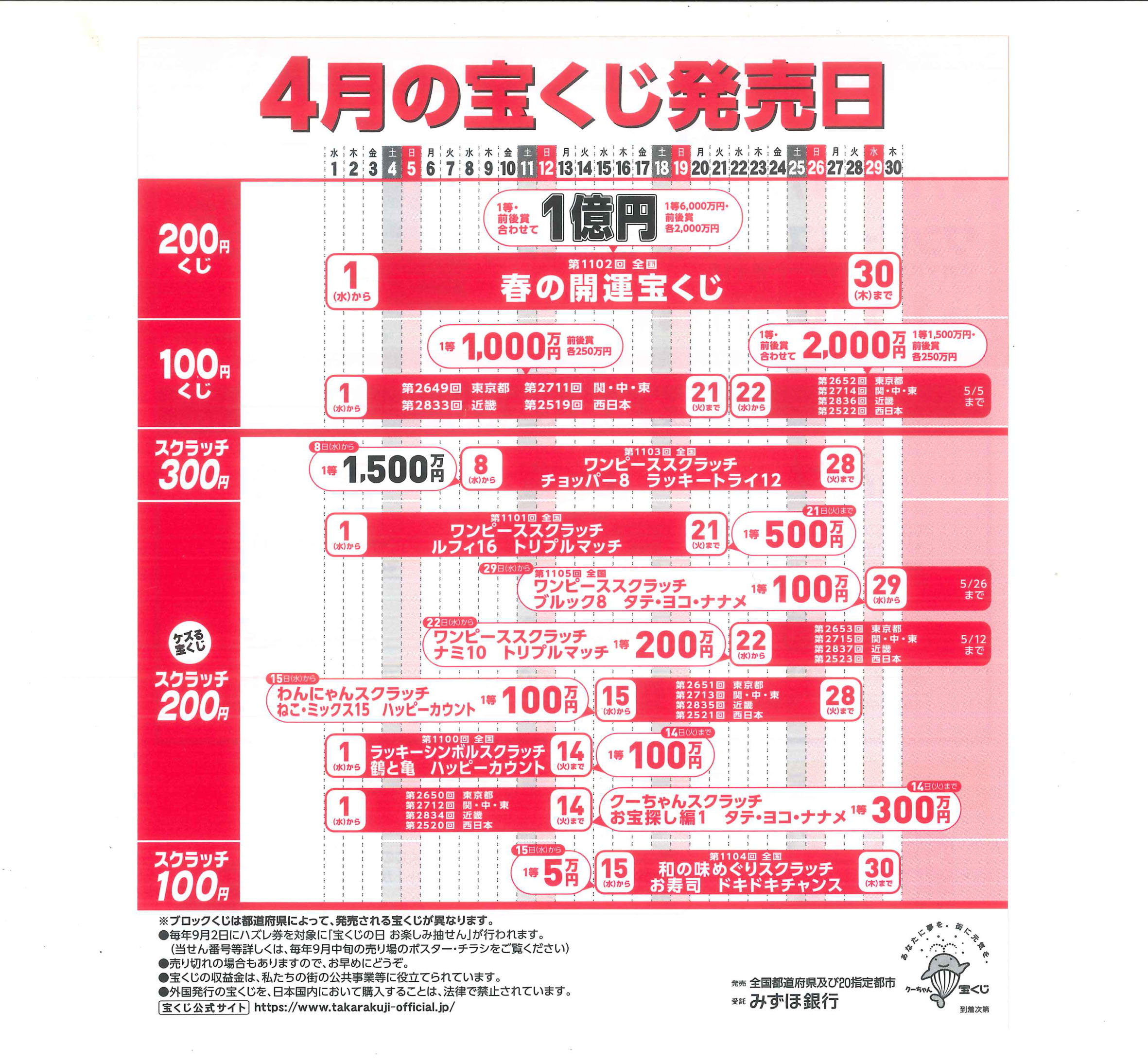 ■春の開運宝くじ 春の運、全開です 1等 前後賞合わせて 1億円 1枚200円 【抽選日:令和8年5月11日】